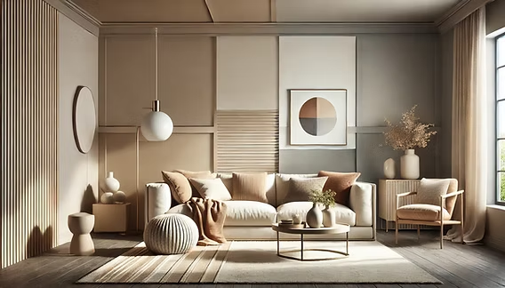 Earthy tones like beige and brown create a welcoming and grounded atmosphere. This combination works beautifully in living rooms and dining areas, especially when paired with wooden furniture.
