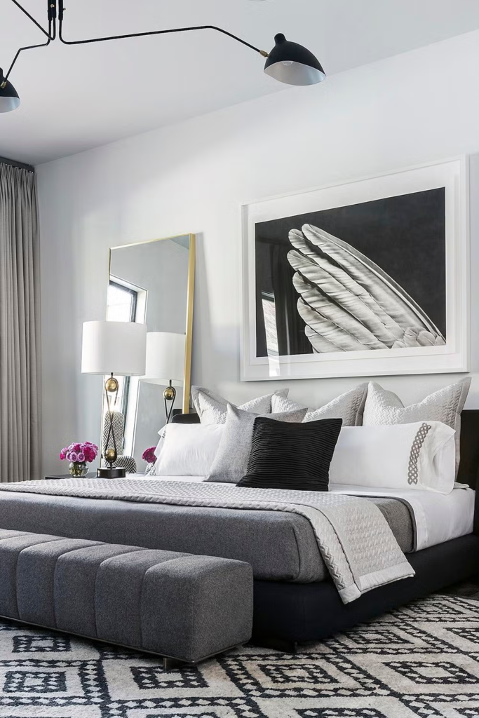 Tip: Balance the look with warm lighting and natural textures to avoid a stark appearance.