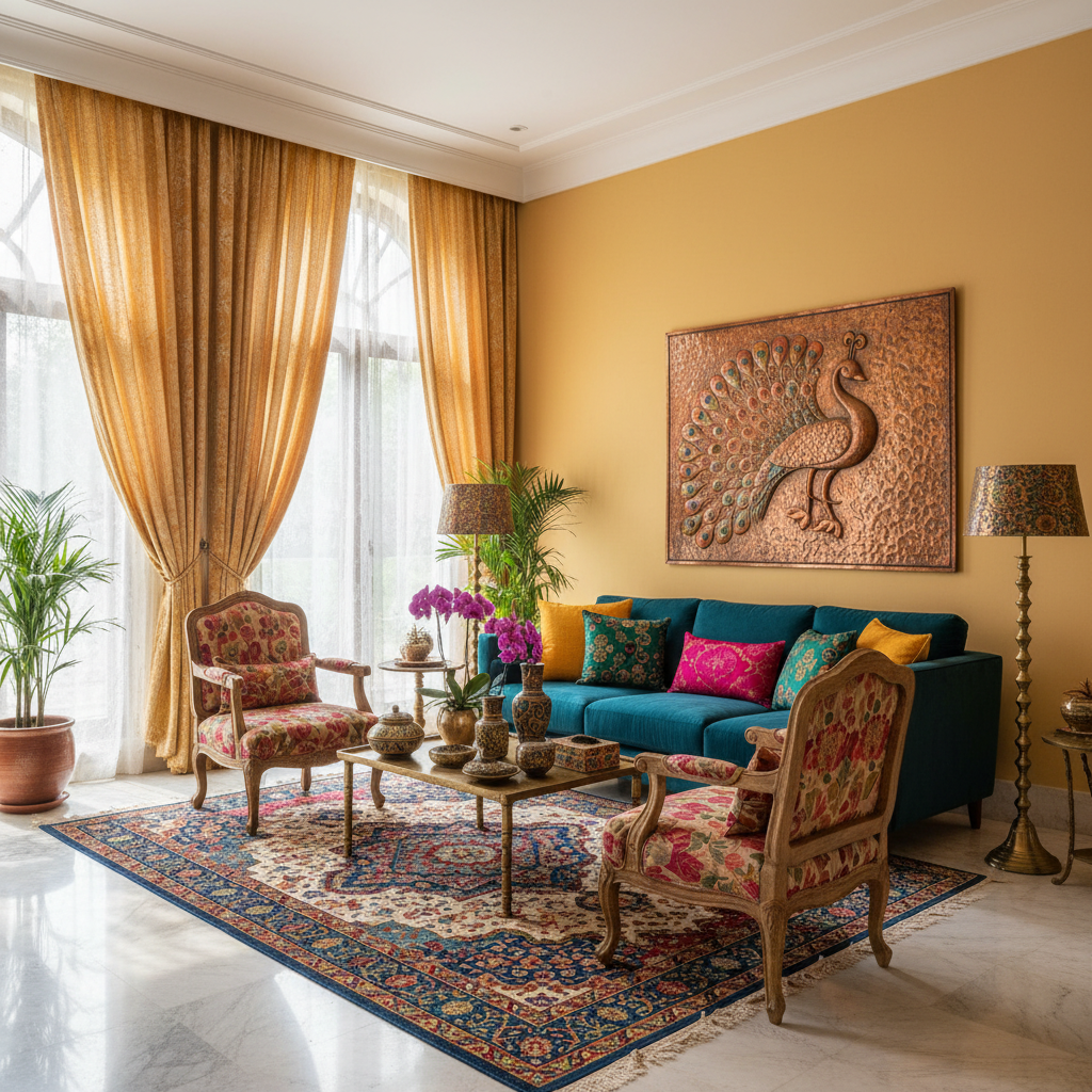 Today’s homeowners often embrace a fusion approach — combining traditional Indian elements with contemporary design. A carved wooden console against a minimalist wall, or a vibrant silk runner in a modern dining room, can create a balanced and timeless aesthetic.